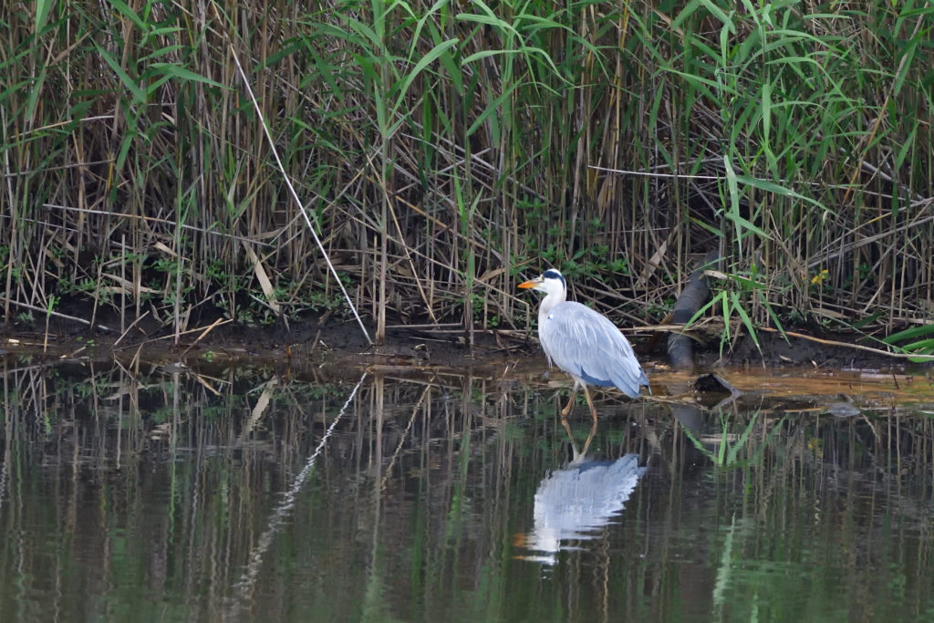 北柏ふるさと公園から手賀沼向こう岸に周りました。実は大津川の方で、ヘラサギが見られるとの情報があり、ヘラサギを撮影したかったので、大津川方面に向かいました。途中で、コサギ(?もしかしたらチュウサギ?)、アオサギに出会いましたが、ヘラサギを見つけることはできませんでした。手賀沼自然ふれあい緑道の展望台にカメラを構えた人が何人もいました。きっと、ヘラサギをねらっているのでしょう。