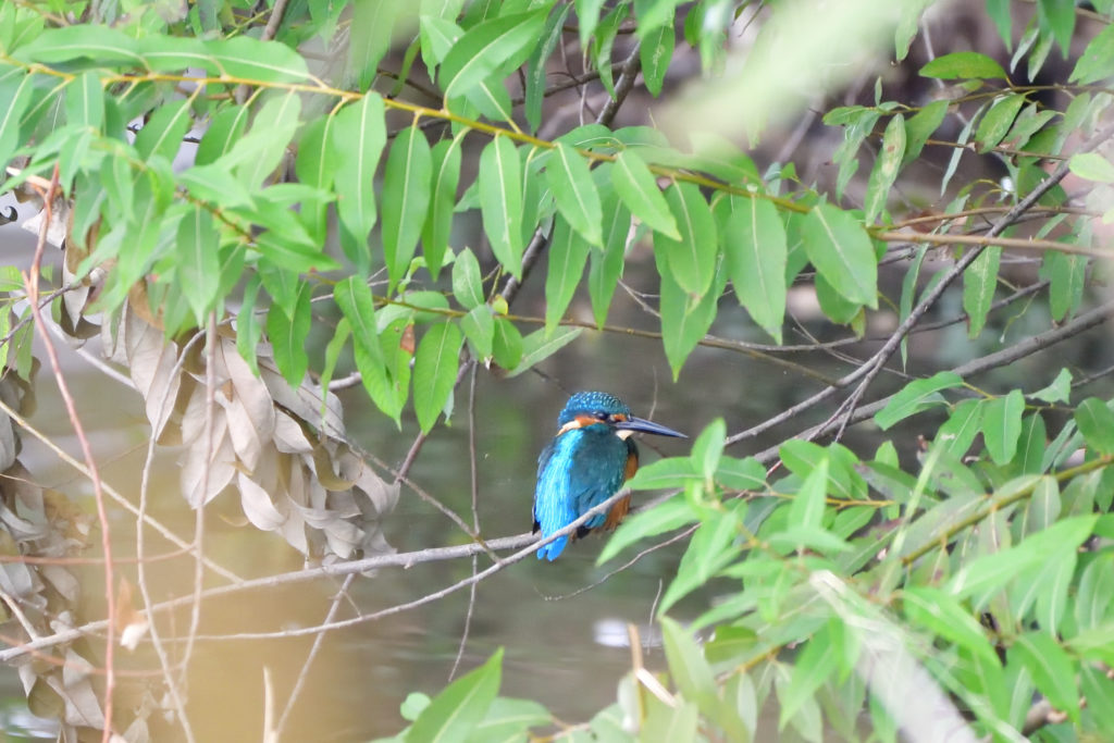 今日は、曇り空でしたが、雨の心配がないとの予報だったので、朝8時半ごろ、サイクリングで野鳥撮影にでかけました。いつもどおり北柏ふるさと公園に行くと、いきなりカワセミに遭遇!北柏ふるさと公園の池は対岸までの距離が20mぐらいあるので、500mm+APS-Cのカメラでもなかなか大きく撮影するのが難しいのですが、それなりの写真は撮ることができました。ダイブして魚を取ってくれましたが、距離があり動きが速くで難しいので、ダイブの写真は撮れませんでした。
