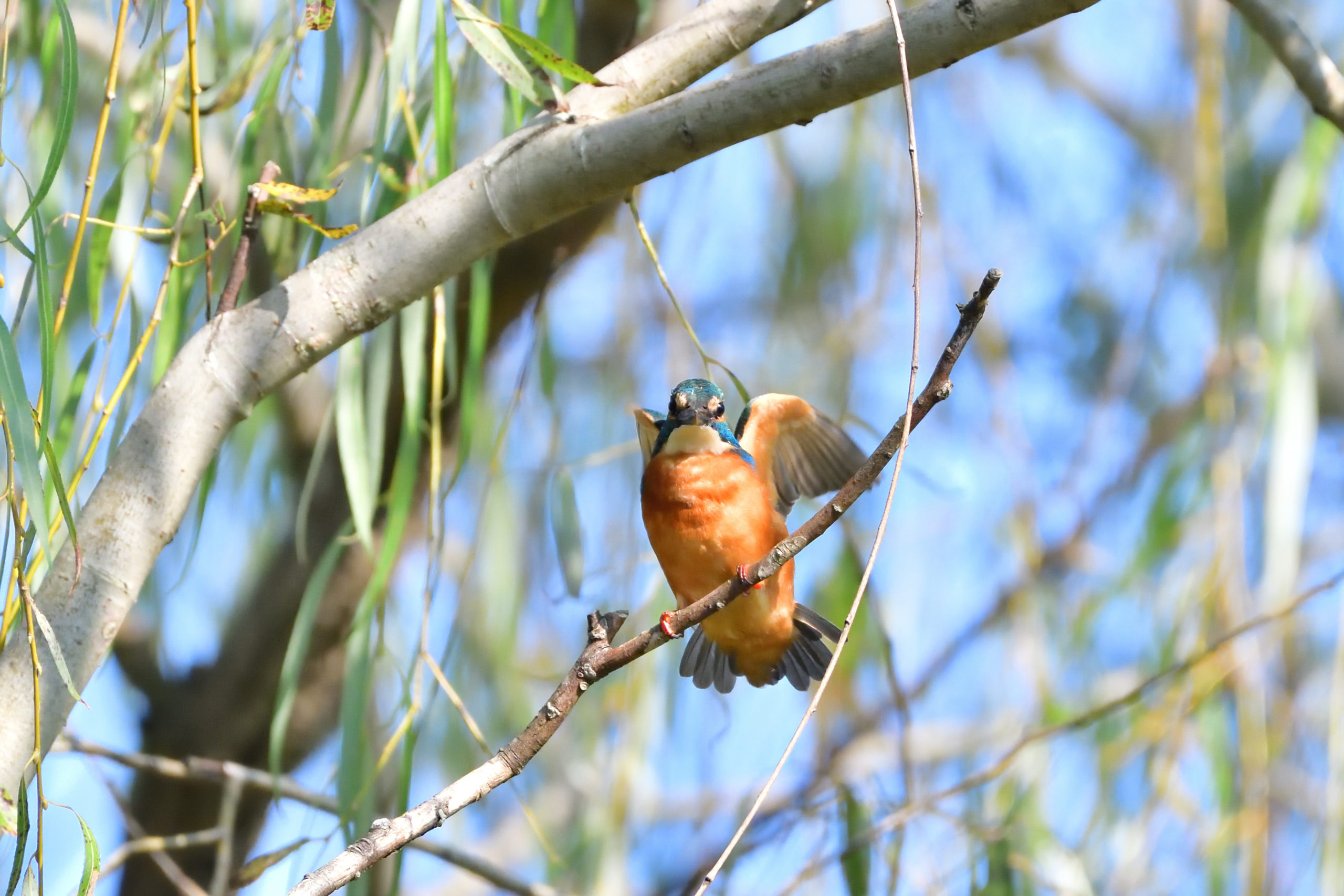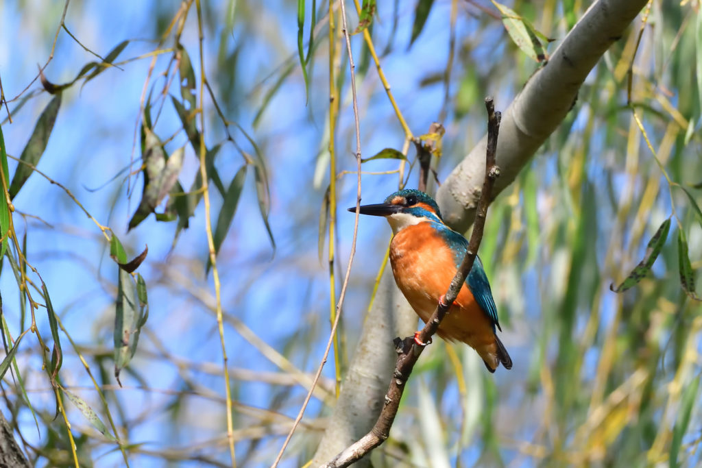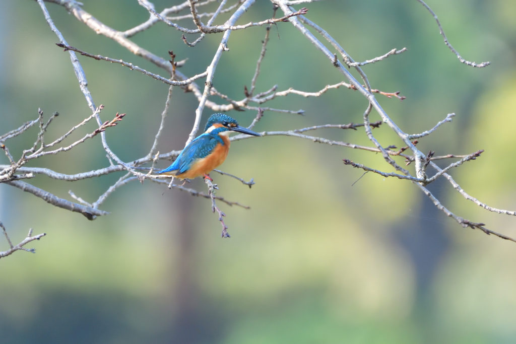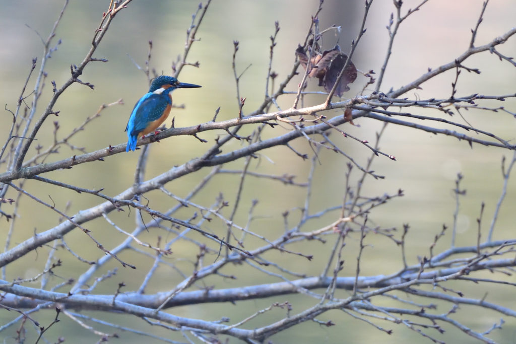 朝起きると快晴でした。天気に誘われ、7時半ごろ北柏ふるさと公園にサイクリングで野鳥撮影にでかけました。お日様が低い午前中は、撮影は、逆光との戦いです。カワセミがよく出る池の朝日側に回り込んで待つこと約30分、モズがいたので、カワセミは来ないかと思ったのですが、モズが姿を消した10分後にカワセミくん来てくれました。順光側に回り込んで待ち構えたので、いつもよりは少し良い写真が撮れました。