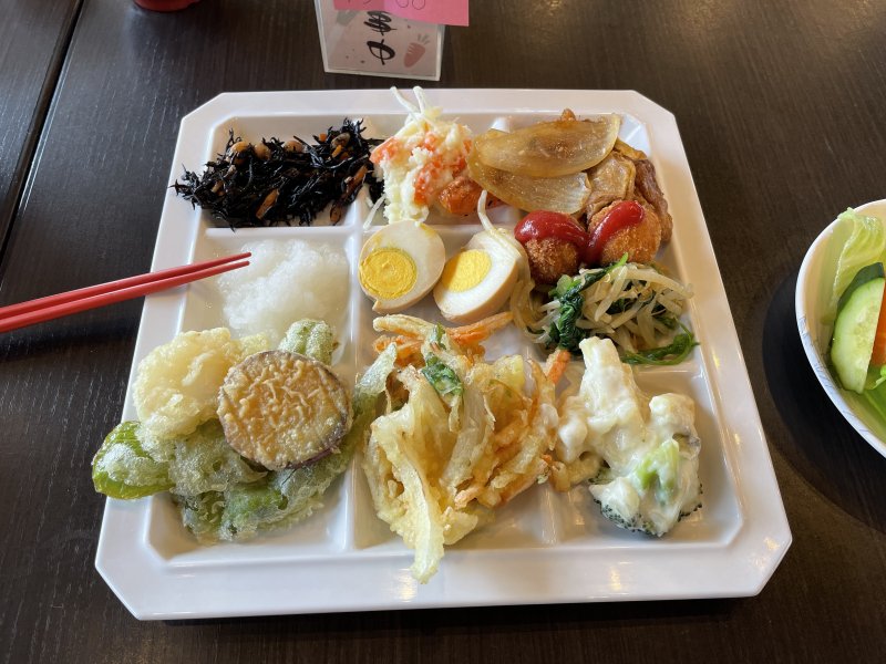 店に入ると、いきなり検温でした。感染対策もしっかりやっている感じで、安心感を感じました。本当に久しぶりでしたので、値上がりしていないか心配していましたが、以前と同じ、2人で税込み3,080円(1人1,500円ほど)という価格でしたので、着いて会計して一安心。席に案内されました。ランチは、15時までなので、60分(通常の制限時間は、70分)ほどの時間でしたが、十分食事を楽しめました。野菜は、どれも新鮮でしゃきしゃきしていて、食べると旨味がにじみ出るような感じで野菜の美味しさを堪能することができました。以前に行ったのは、新型コロナウイルス感染の広がる前でしたので、3年ぶりぐらいの訪問ではないかと思います。